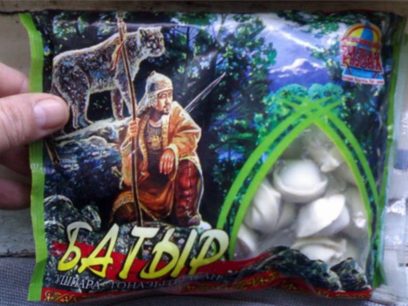 Упаковка производимых в Петропавловске пельменей, рисунок на которой стал предметом судебной тяжбы. Петропавловск, февраль 2011 года.