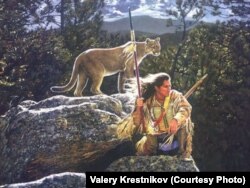 И на самом деле, расположение фигур хищного зверя (в американской трактовке – это пума, в казахстанской – это барс) и двух воинов схоже, но пейзаж и наличие фигур воинов Абылай-хана в эпическом полотне отличают его от картины Крейга Теннанта.