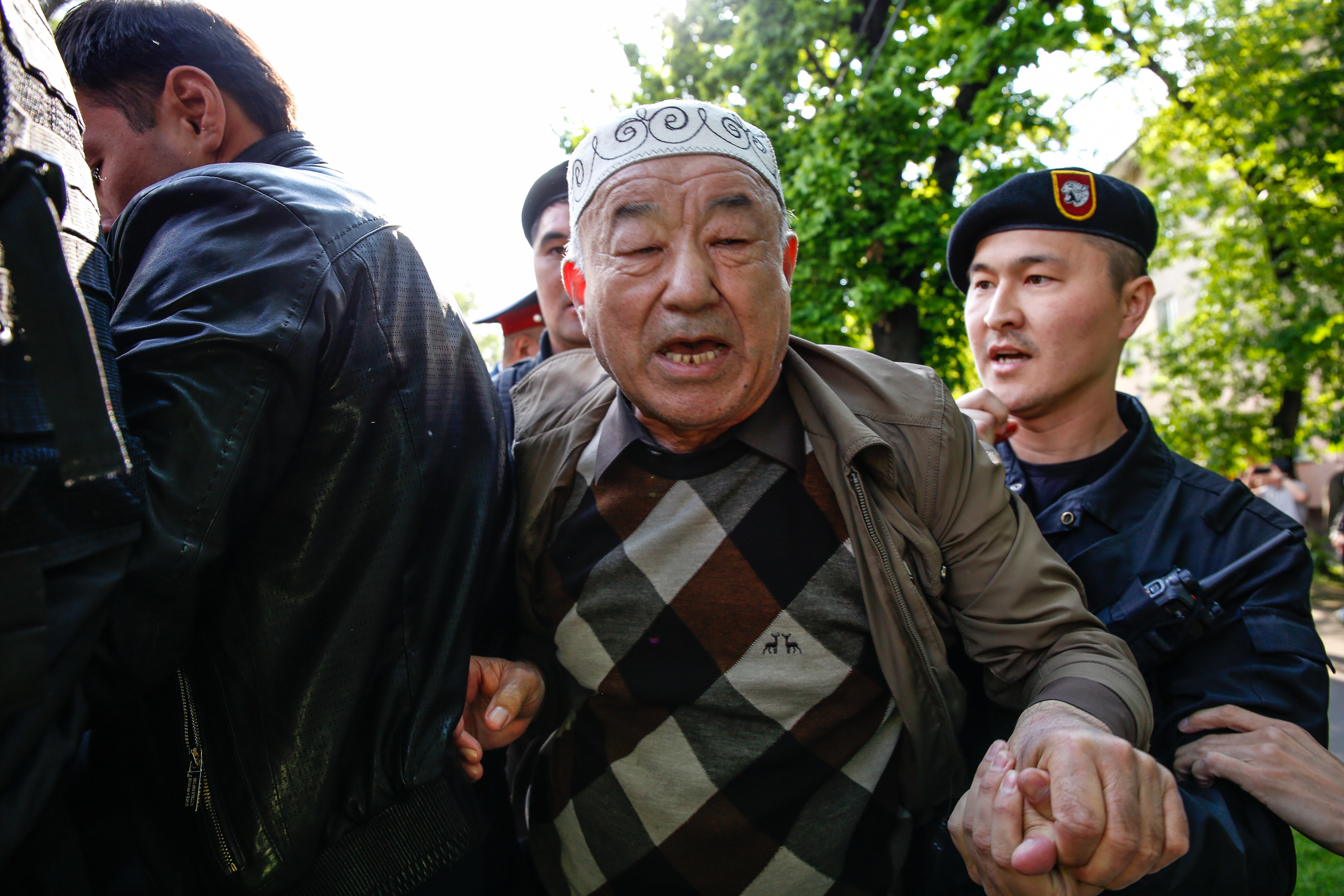 Митингующие, немного потолкавшись, продолжили выступать: против президента Касым-Жомарта Токаева, экс-президента Нурлсутана Назарбаева, переименования столицы из Астаны в Нур-Султан.