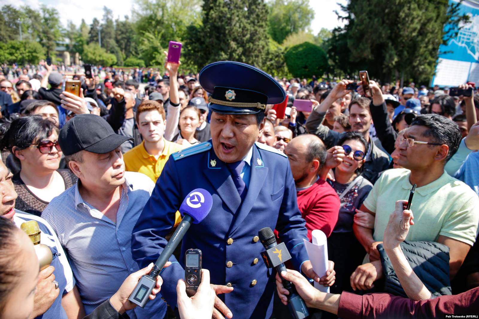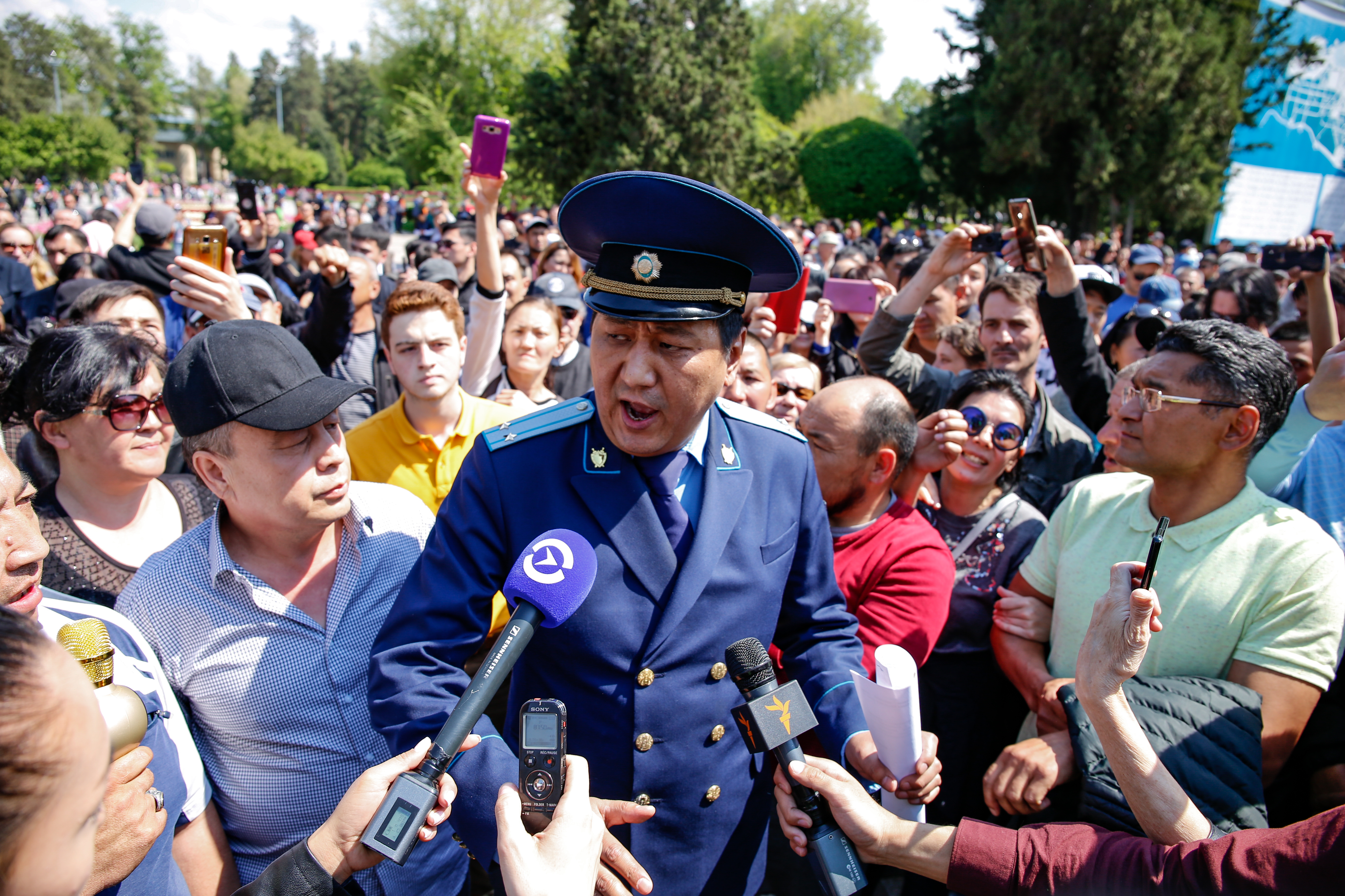 К ним прибыл прокурор Медеуского района Асхат Жакупов. Под недовольный свист и улюлюканье он рассказал об ответственности за проведение несанкционированного митинга. Выслушав, участники акции развернулись к центру парка, не прерывая выступления.
