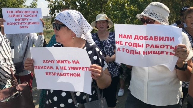 После митингов за снижение пенсионного возраста женщин Токаев сказал, что «планка пенсионного возраста для женщин будет до 2028 года зафиксирована на уровне 61 года». Он не уточнил, какие суммы будут дополнительно предусмотрены в бюджете на выплату пенсий в ближайшие шесть лет. Токаев также не остановился подробнее на том, как будет повышаться пенсионный возраст после 2028 года.