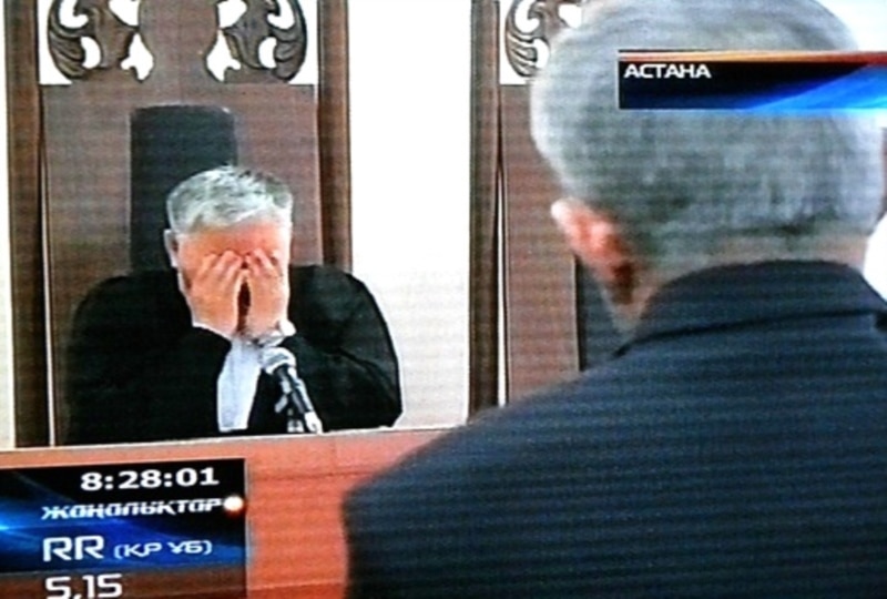 Один из казахстанских телеканалов показал якобы плачущим судью Мейрама Жангуттинова по делу бывшего министра Жаксылыка Доскалиева. Астана, 26 мая 2011 года.