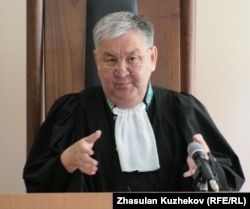 Судья Мейрам Жангуттинов закончил читать приговор в отношении бывшего министра Жаксылыка Доскалиева, отправив его на семь лет в тюрьму. Астана, 5 августа 2011 года.