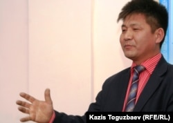 Дос Кошим, председатель общества «Улт тагдыры», на одной из пресс-конференций. Алматы,19 апреля 2010 года.